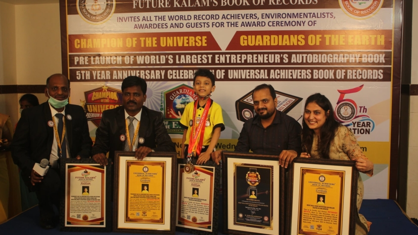 UNIVERSAL ACHIEVERS BOOK OF RECORDS HONOUR REYANSH MEHTA, BORN ON 18TH DECEMBER, 2014 OF CHENNAI, TAMIL NADU, INDIA FOR CREATING A WORLD RECORD OF PERFORMING HULA HOOP ROTATIONS WHILE SOLVING 4 RUBIK CUBES (3/3 RUBIK’S CUBE, 2/2 RUBIK’S CUBE, PYRAMINX & 2/2 MIRROR CUBE) AND SPELLING ALL THE 195 COUNTRIES NAMES IN 8 MINUTES 38 SECONDS ON 14TH APRIL, 2021 IN CHENNAI, TAMIL NADU, INDIA
