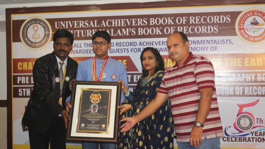 UNIVERSAL ACHIEVERS BOOK OF RECORDS HONOUR RAHUL VITTAL, BORN ON 29TH NOVEMBER, 2006 OF CHENNAI, TAMIL NADU, INDIA FOR CREATING A WORLD RECORD OF BEING THE YOUNGEST STUDENT TO DO LONGEST YOUTUBE LIVE STREAMING FOR 14 HOURS ON 24 DIFFERENT SOCIAL AND GLOBAL AWARENESS TOPICS STARTING FROM 3.00 PM 11TH APRIL, 2021 TO 5.00 AM 12TH APRIL, 2021 ON 9TH APRIL, 2021 IN CHENNAI, TAMIL NADU, INDIA.