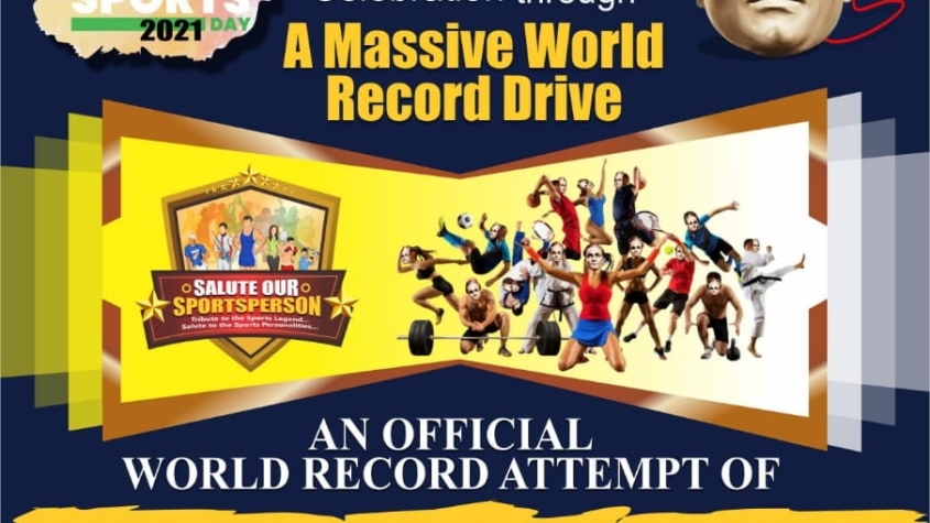 SALUTE OUR SPORTSPERSON is a Massive World Record Attempt to PAY TRIBUTE TO THE SPORTS LEGEND MAJOR DHYAN CHAND and SALUTE OUR SPORTS PERSON OF VARIOUS SPORTS