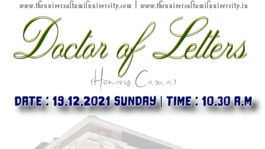 DEAR WORLD RECORD ACHIEVERS DO YOU WISH TO GET THE HONORARY DEGREE OF DOCTORATE IN RECORD BREAKING FOR YOUR WORLD RECORD ACHIEVEMENT???DEAR SOCIAL SERVICE ACTIVISTS AND ACHIEVERS OF VARIOUS FIELD DO YOU WISH TO GET THE HONORARY DEGREE OF DOCTOR OF LETTERS FOR YOUR EXTRAORDINARY SERVICES TO THIS SOCIETY???WE INVITE ALL THE REAL HERO’S OF THE SOCIETY FOR THE CONVOCATION CEREMONY OF DOCTORATE IN RECORD BREAKING AND DOCTOR OF LETTERS FROM THE UNIVERSAL TAMIL UNIVERSITY…DATE: 19th December, 2021.VENUE: HOTEL VESTIN PARK, EGMORE, CHENNAI, TAMIL NADU, INDIA.ALL ARE INVITED…![]()