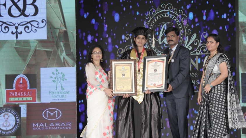 UNIVERSAL ACHIEVERS BOOK OF RECORDS Certify and Honour Mr. RAJESH MENON – SHOW DIRECTOR, FRIENDS & BEAUTY GROUP, ERNAKULAM, KERALA, INDIA for CREATING A MASS WORLD RECORD OF MOST MAKEUP ARTISTS, FASHION DESIGNERS, MODELLING COMPANIES AND MODELS TO PERFORM BRIDAL MAKEUP AND FANTACY MAKEUP IN A FASTEST TIME OF 22 MINUTES AND 22 SECONDS AND SHOWCASING IT THROUGH A FASHION SHOW PERFORMANCE IN SINGLE LOCATION ON 6TH DECEMBER, 2022 IN VGDM HALL, THAZHA THANGADI, KOTTAYAM, KERALA, INDIA.