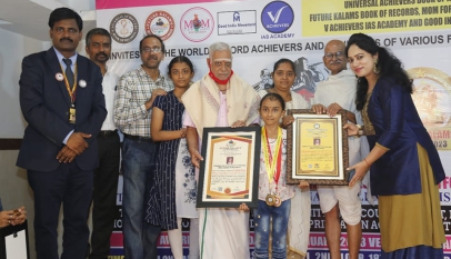 UNIVERSAL ACHIEVERS BOOK OF RECORDS Certify and Honour AATHMA YOGA CENTRE, PUDUKKOTTAI, TAMIL NADU, INDIA for Creating a MASS WORLD RECORD OF 875 STUDENTS PERFORMING 8750 VARIETIES OF YOGASANAS (EVERY PARTICIPANT PERFORMING 10 ASANAS EACH) FOR 10 MINUTES (8750 MAN MINUTES WERE UTILIZED TO ACHIEVE THIS WORLD RECORD) ON 23RD…