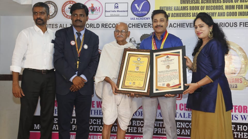 UNIVERSAL ACHIEVERS BOOK OF RECORDS Certify and Honour S. MOHAMMED NAYEEM, Born on 2nd February, 1976 of SAKHAS YOGA, Chennai, Tamil Nadu, India for creating a WORLD RECORD OF BEING THE FIRST PERSON IN THE WORLD TO PERFORM 140 KGS WEIGHTLIFTING PLANK ON HIS BACK CONTINUOUSLY FOR A RECORD TIME OF ONE MINUTE ON 13th NOVEMBER, 2022, IN CHENNAI, TAMIL NADU, INDIA.